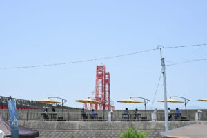 つまつり・昇開橋スタンプラリーと同日開催し、賑やかな雰囲気の中、筑後川昇開橋を望